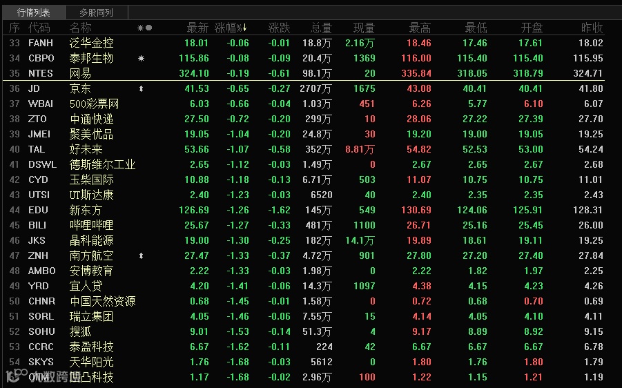 值得一提的是,大型中概股也非常扛跌,阿里巴巴跌3.74%,京东跌0.65%,百度跌3.27%,网易下跌0.19%,跌幅皆远小于各大指数。