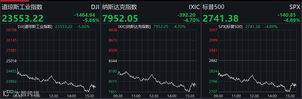 周三美股收盘再度暴跌,道指收跌逾1400点,跌幅近6%,该指数收盘跌入技术熊市。标普500指数跌4.89%,纳指跌4.7%。波音跌超18%,创2017年6月以来新低。陶氏跌10.86%,联合技术跌9.93%,美国运通跌7.67%,思科跌7.56%,领跌道指。