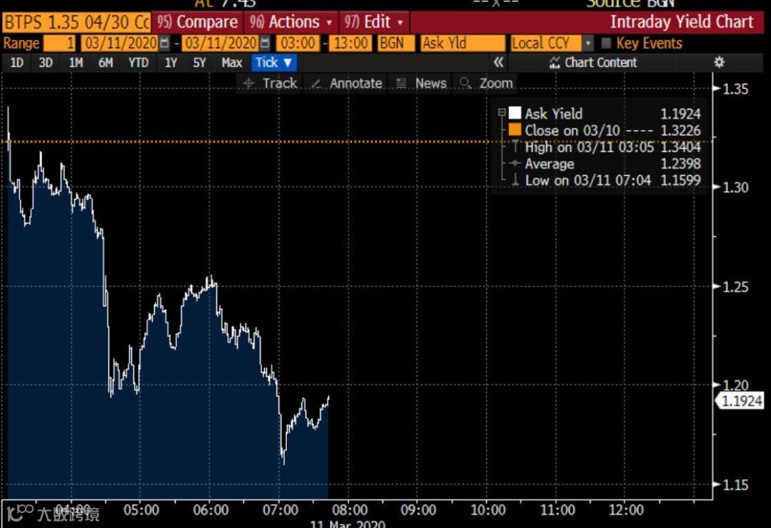 与此同时,意大利总理孔特宣布,意大利已经准备250亿欧元财政支持计划,来帮助经济应对新冠肺炎疫情。消息公布之后,意大利国债收益率出现下滑。