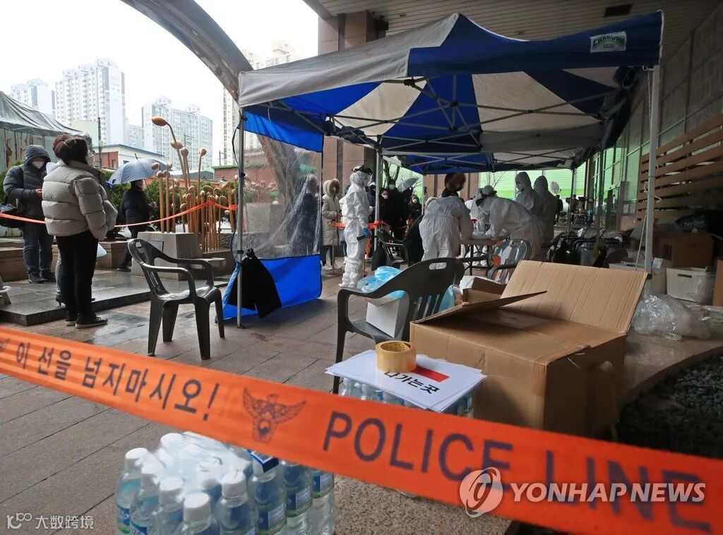 △3月10日上午,在首尔市九老区的一家呼叫中心门口,当地居民进入筛查诊所接受诊查。图/韩联社