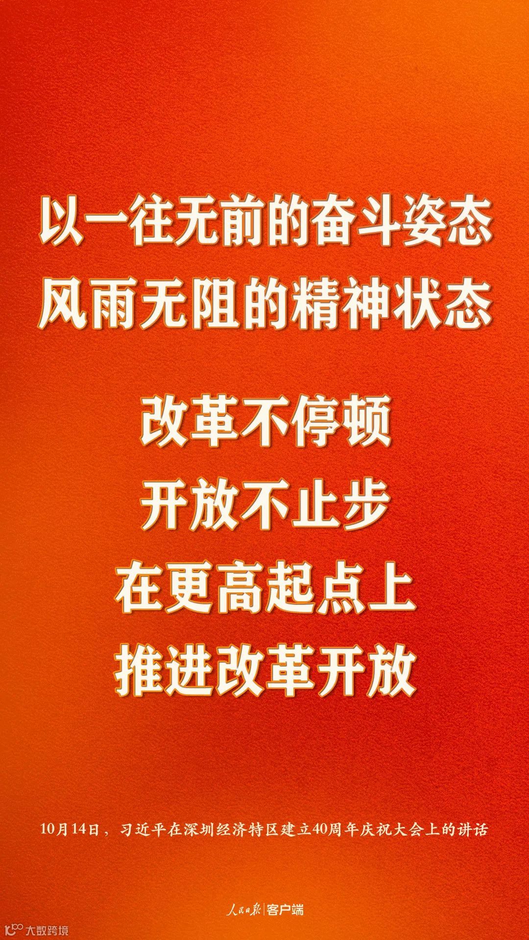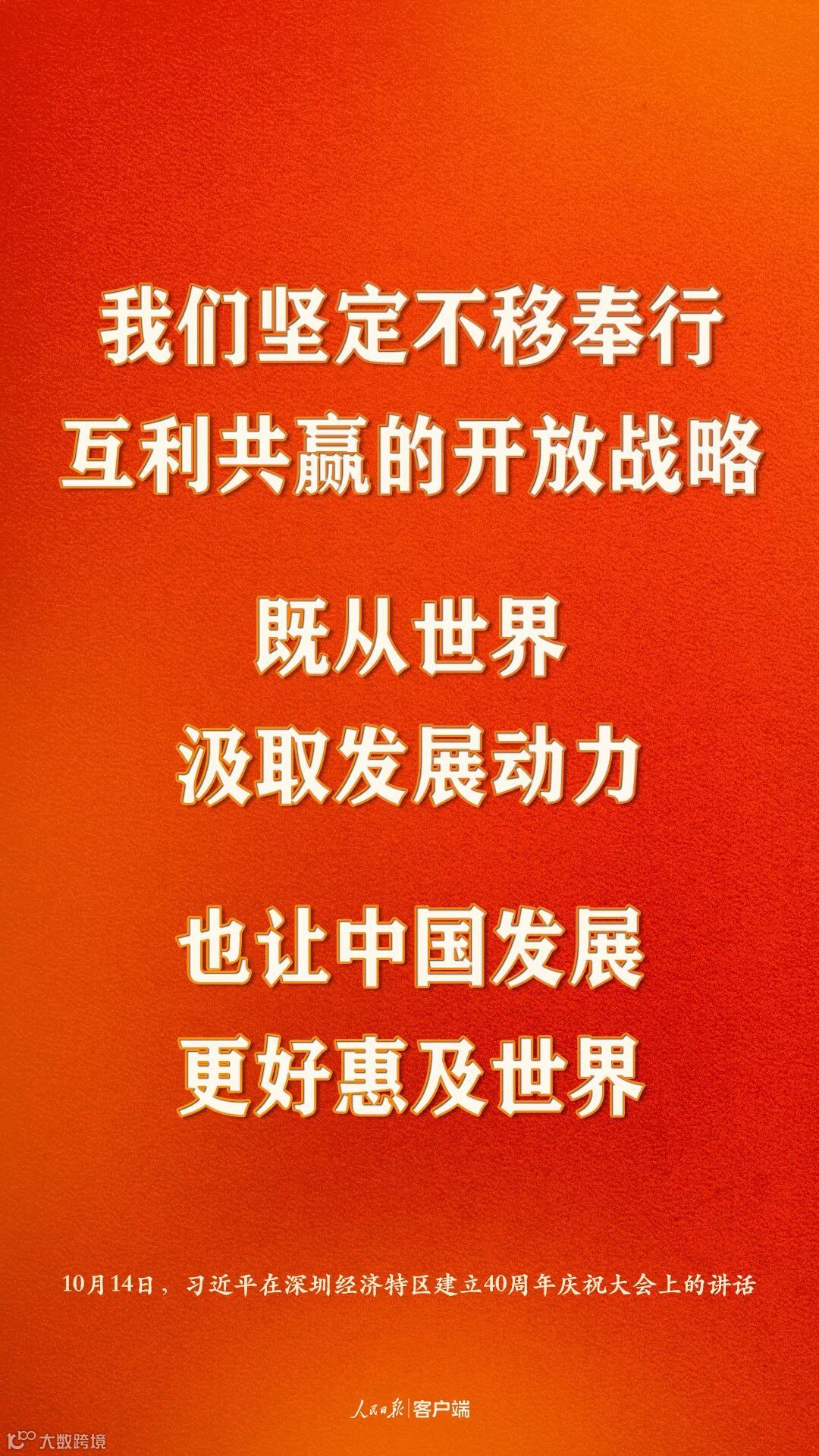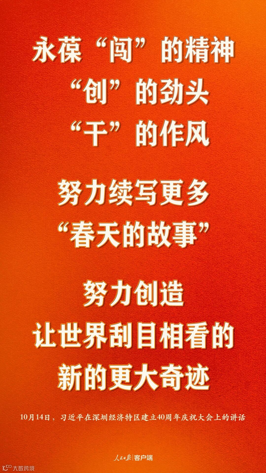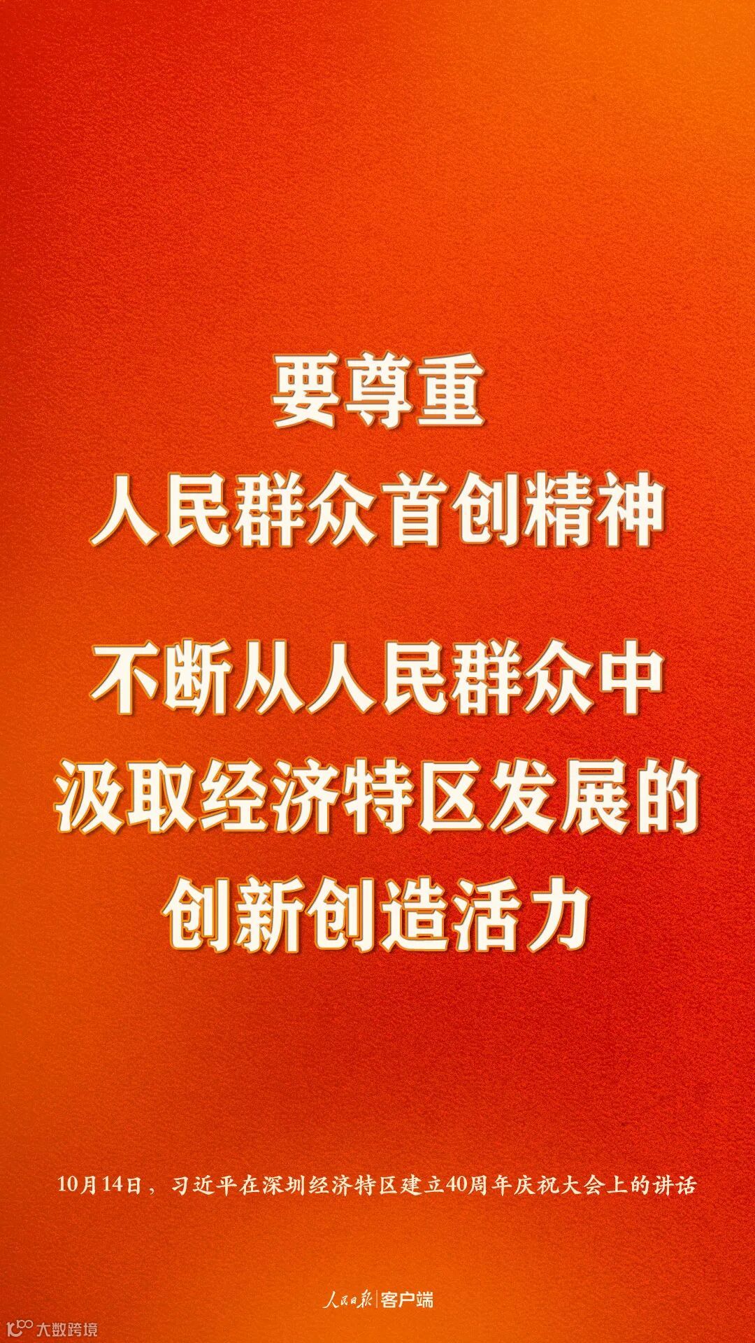 看似寻常最奇崛,成如容易却艰辛。深圳等经济特区一路走来,每一步都不是轻而易举的,每一步都付出了艰辛努力。深圳等经济特区改革发展事业取得的成就,是党中央坚强领导的结果,是广大干部群众开拓进取的结果,是全国人民和四面八方广泛支持的结果。在这里,我代表党中央、国务院和中央军委,向经济特区广大建设者,向所有为经济特区建设作出贡献的同志们,致以诚挚的问候!向各位来宾,向关心和支持经济特区建设的国内外各界人士,表示衷心的感谢!