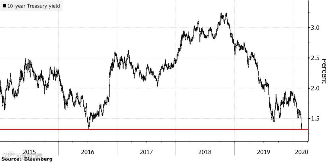 在股票市场疯狂抛售的同时,资金在避险需求的推动下,大量涌入债券市场,美国和欧洲主权债券价格持续飙升,而由于国债价格与收益率呈现反向走势,各国债券收益率纷纷走低。特别是美国10年期国债收益率,创下历史新低,为1.31%。