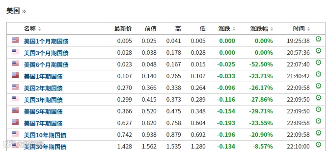 在美联储无上限QE计划公布之后,美债迎来暴涨,各期限国债收益率大跌。