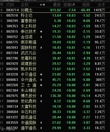 3月16日,在中兴通讯大跌之下,其他5G个股也大幅下跌,有多只跌停。