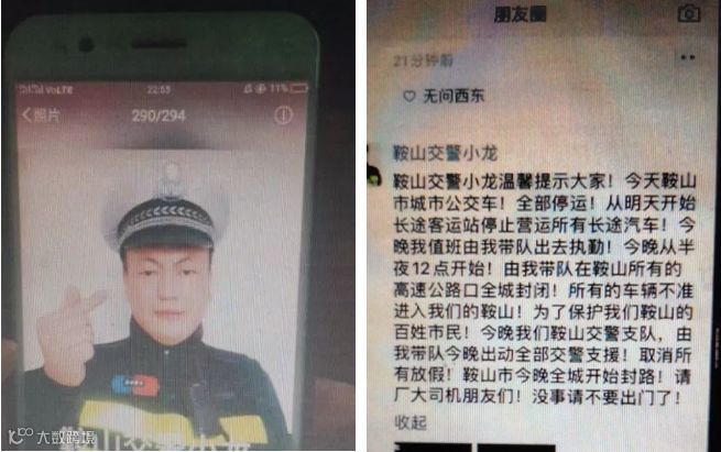 犯罪嫌疑人赵某某系无业人员,自2018年开始购置警用装备,并多次在社交平台发布其穿戴警用装备的视频冒充警察。1月26日,赵某某为满足虚荣心,扩大网络影响力,将自己身着警服的照片设为微信头像,同时将微信昵称设为“鞍山交警小龙”,并在微信朋友圈发布信息称鞍山市公交、长途车停运、高速封闭等消息并配发多张警察执勤图片。