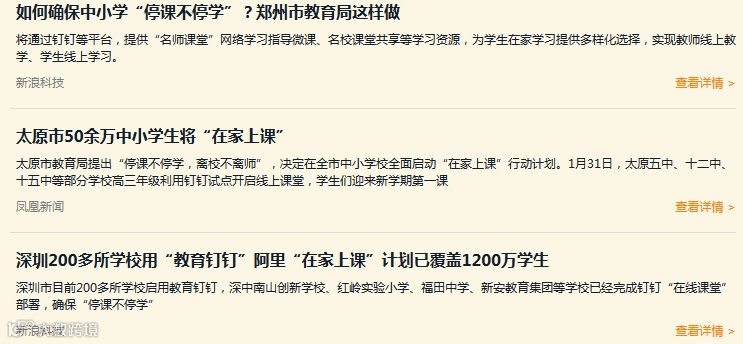 在线上办公之外,为响应延迟开学,钉钉发起了“在家上课”计划,提供线上授课支持。据钉钉官网数据,目前全国超20个省份220多个教育局、20000所学校、1200万学生已通过钉钉实现在家上课。无论是中小学校还是高等院校,都可实现钉钉“在家上课”。