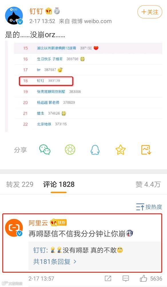 作为阿里巴巴旗下一员,与扛过双十一的淘宝兄弟多年,尤其是在经历了节后复工的历练后,钉钉这次显然经受住了高校复课的考验。因“没崩”而上热搜,钉钉自己也很是无奈,而来自阿里云官微的互动更是引起网友围观。