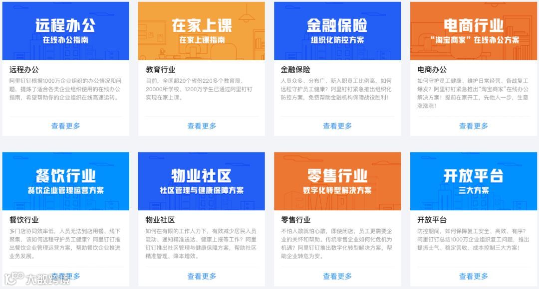 此外,在这个漫长的春节假期乃至复工阶段,钉钉推出了更多业务板块。除了远程办公和在家上课,钉钉还推出“钉钉行业复工指南”,包括金融保险、电商办公、餐饮行业、物流社区、零售行业等多个板块,推出有针对性的运营保障方案。