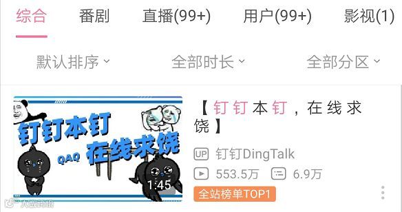 不过,面对来自中小学生的连番差评,钉钉也采取了搞笑+自黑的方式反击,其吐槽视频《 钉钉本钉,在线求饶 》在B站已经超过了五百万的播放量,成功登入全站榜单TOP1。