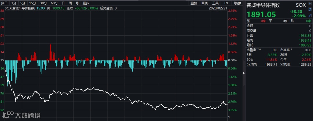 从市场结构来看,上半周涨势不错的芯片股周五大跌,英伟达跌4.7%,AMD跌近7%,美光科技跌3.4%。费城半导体指数亦急挫近3%。