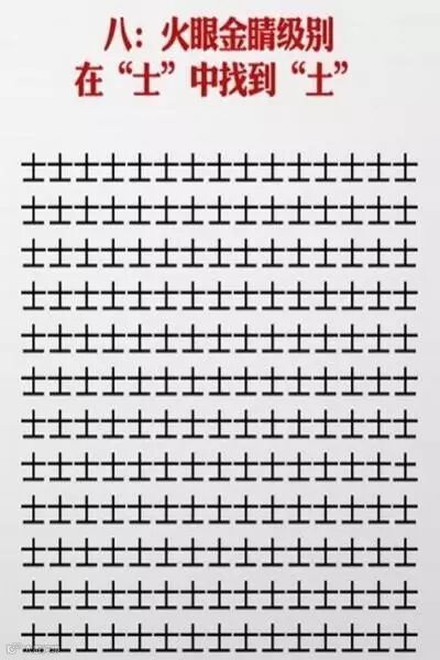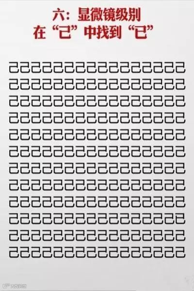 近日网上流传一套神级视力表,在一堆相似的汉字中找不同,据说很多人只挑战到第六关就过不去了,你能玩到第几关?