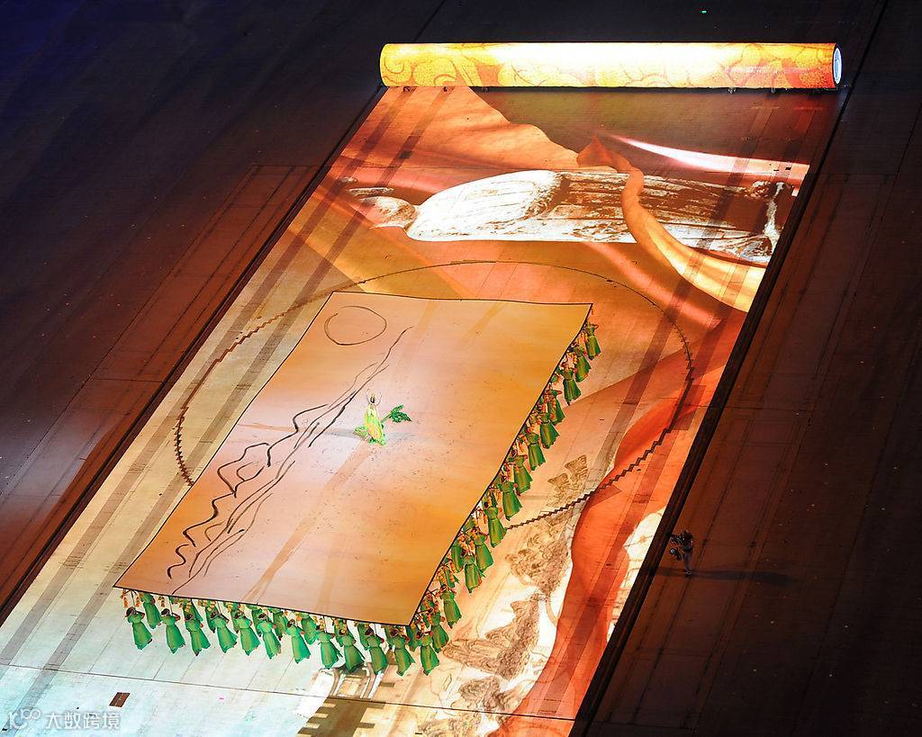 2008年8月8日晚上20点,第29届北京奥运会在国家体育场鸟巢隆重开幕,整个开幕式气势恢弘,令人震撼!尤其值得画人欣慰的是文艺表演开头通过长达70米的中国画卷逐渐展开,来表现中国历史文化的起源和发展。