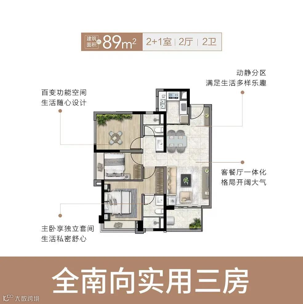 而项目户型,也采用非常人性化的“全生命周期”设计,从针对新婚、一家三口家庭的约89平,到适应二胎家庭的118平、120平户型,再到三胎乃至三代同堂的约150平,户型随着人生变化而不断进阶。
