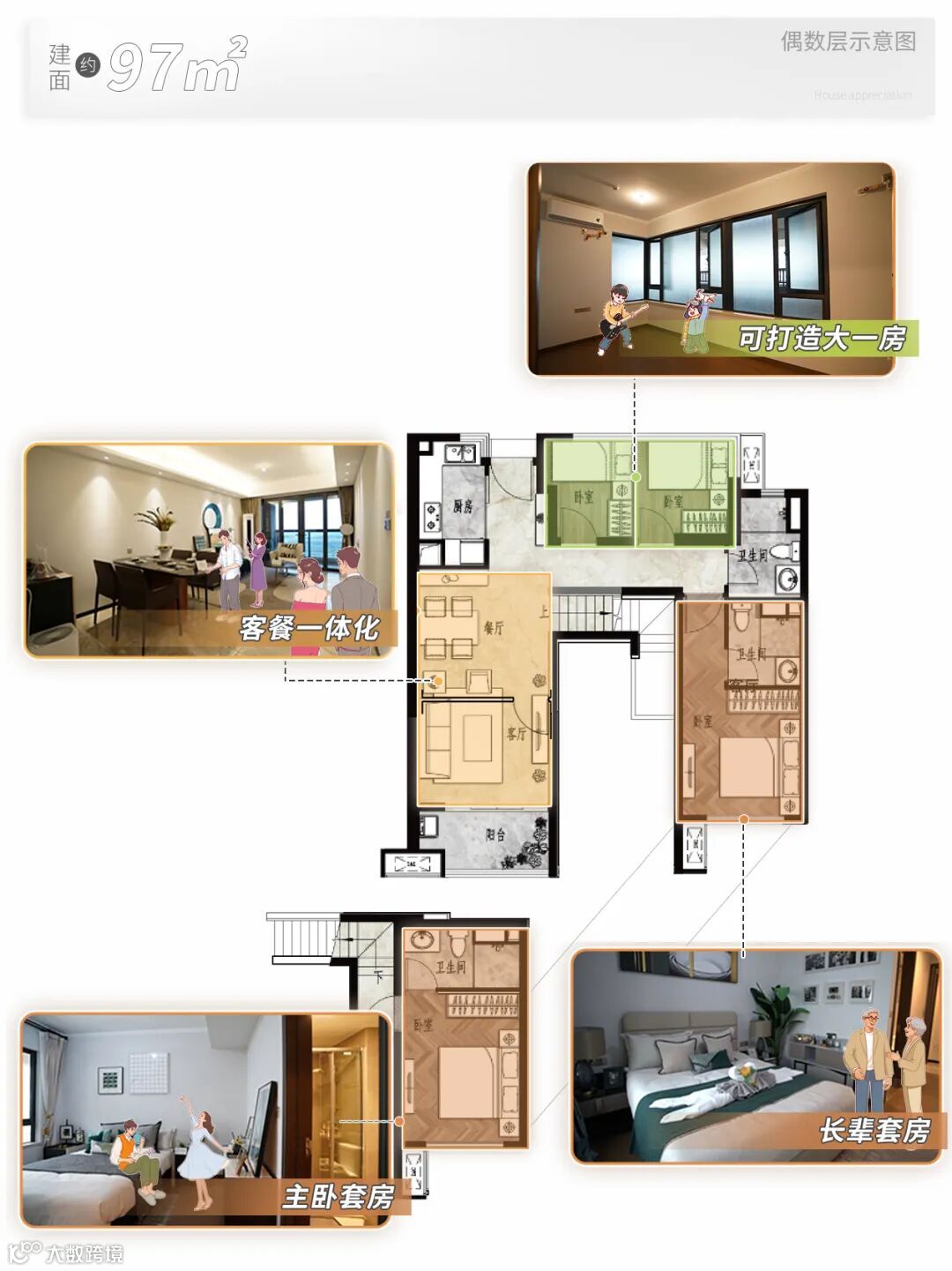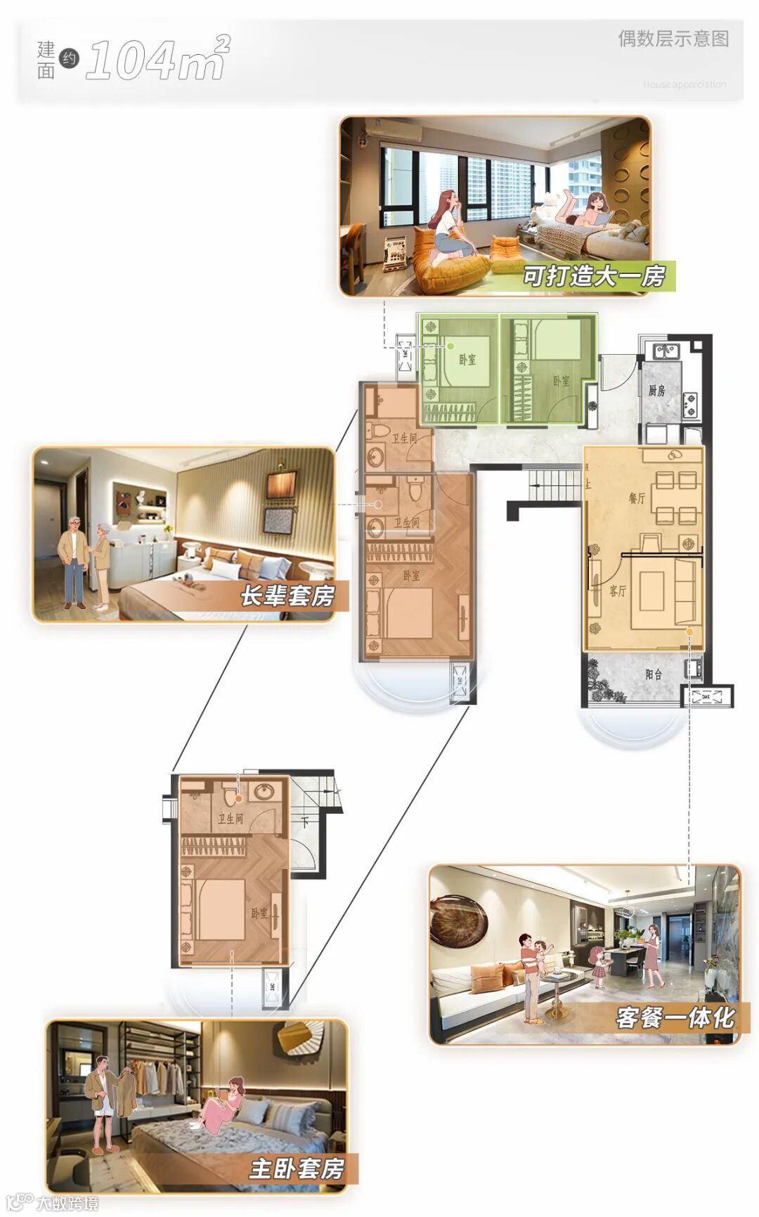 项目约100平空间,打造出比市面同面积多一间房、多一个卫生间,实现跨越式豪宅范。