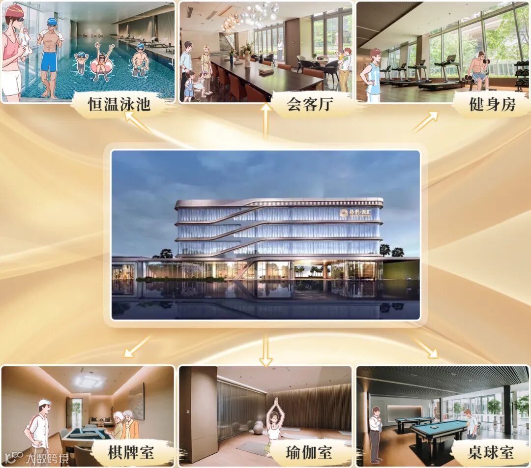 遇上下雨天,长辈们下棋、大人们运动都风雨无阻;若是冬天想游泳锻炼,带上孩子到恒温泳池也不怕着凉。