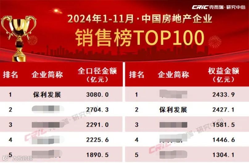 今年1-11月全国销冠,还是保利,全口径销售金额比第二名高出376亿。从年头霸榜到年尾,保利提前锁定全国“年度之王”。