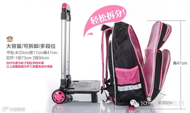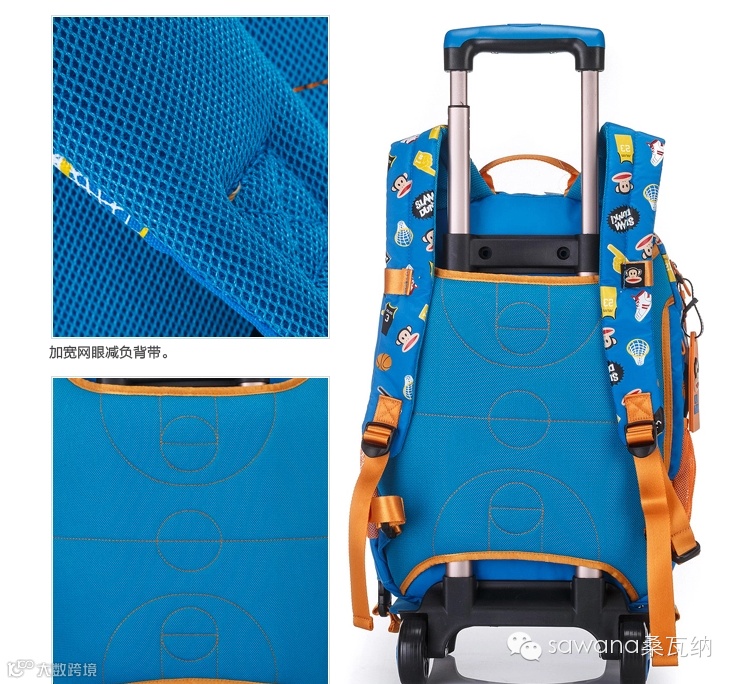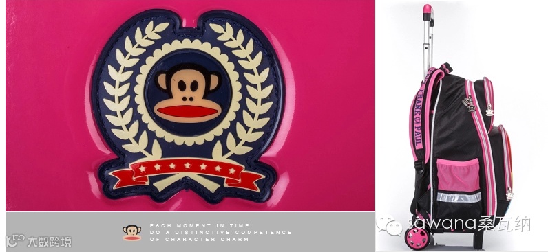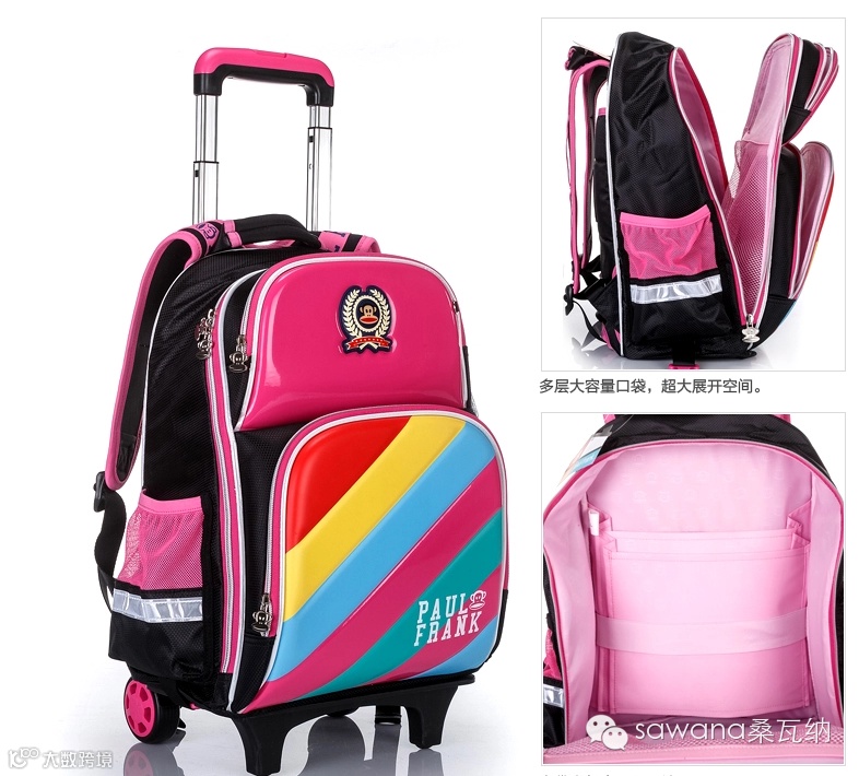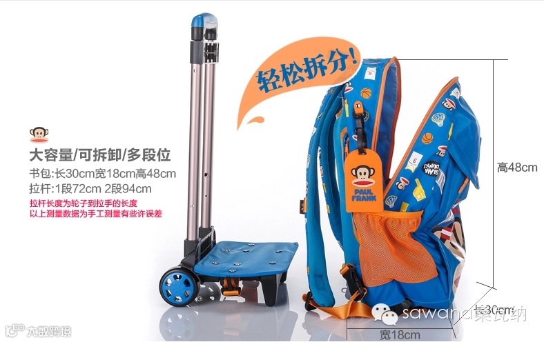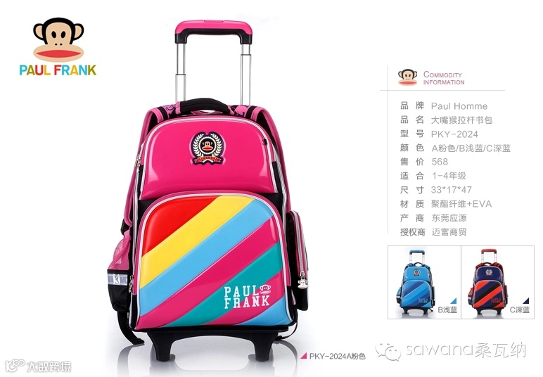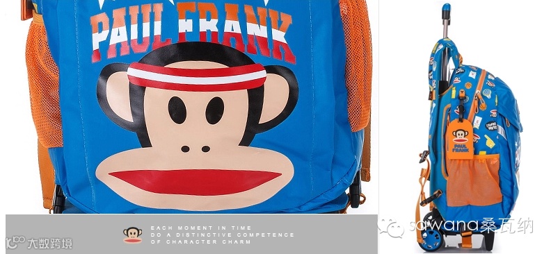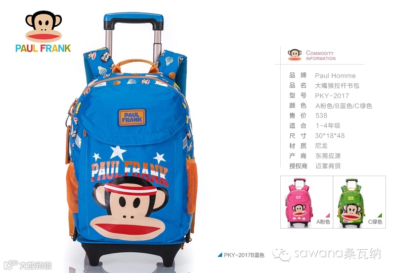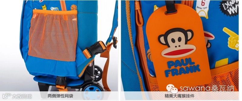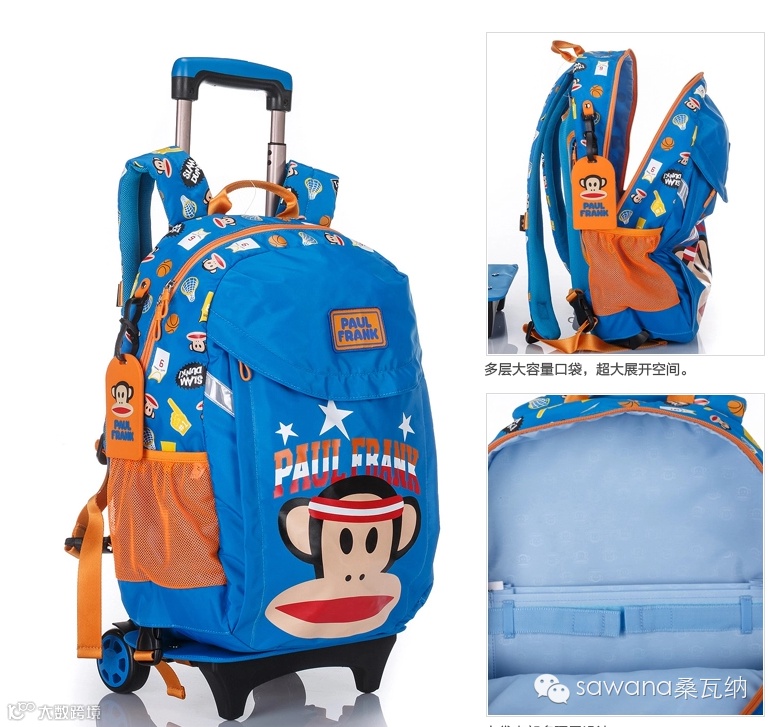 专柜正品Paul Frank大嘴猴15新款儿童小学生拉杆箱包两用儿童书包