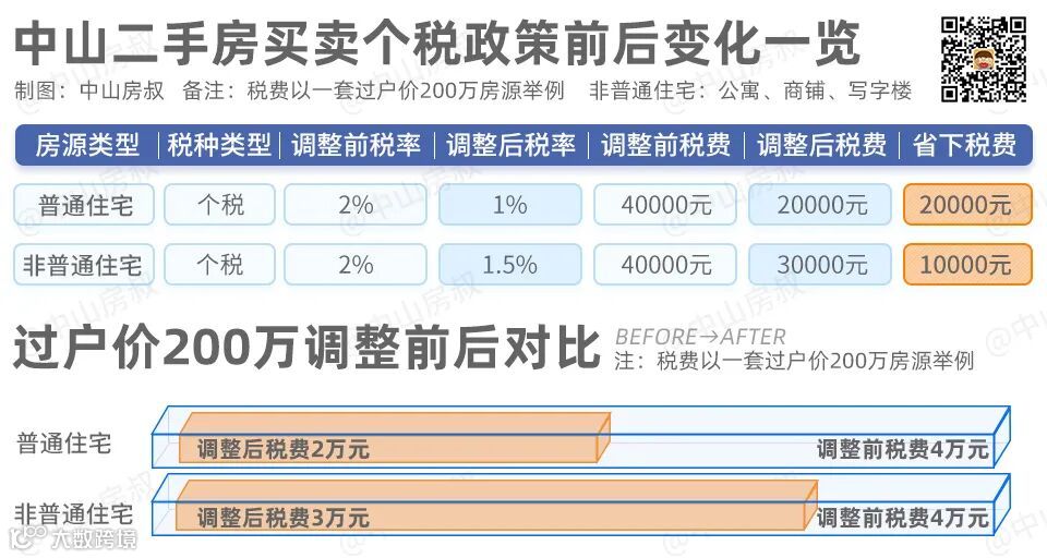 二手房住宅个税降至1%,二手房非住宅个税降至1.5%,二手非住宅的土地增值税调整为5%。也就是说,一套200万的普通住宅,个税可以省下2万元。
