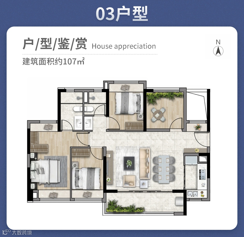 特别是其中的约107平四房户型,坐享百米楼王楼距,五开间朝南,极致通透。且横厅开间达5.8米,主卧还享双飘窗,超大视觉俯瞰园林,体验非常豪横。