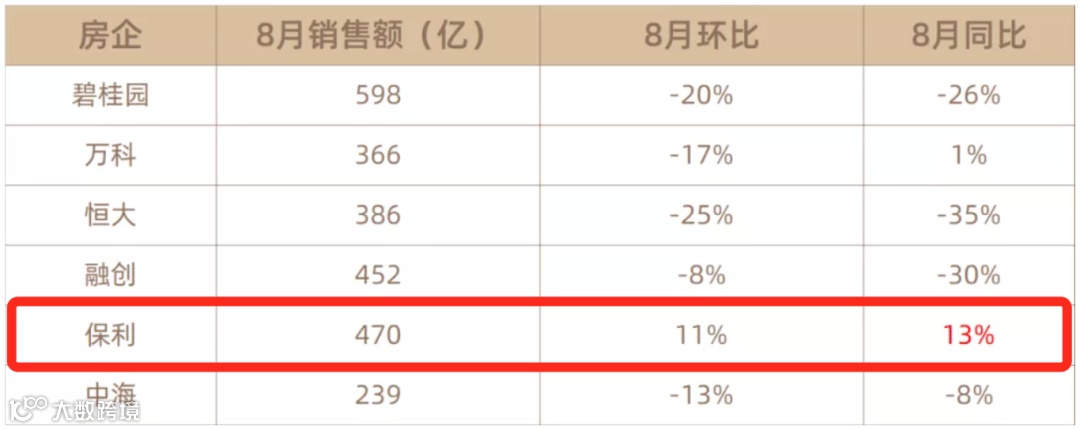 有数据显示,今年8月,保利是销售总额前5里面,唯一环比、同比实现正增长的大鳄。