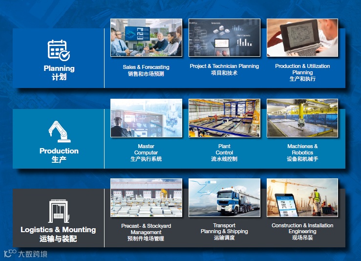 RIB Smart Production装配式建筑智能生产全流程解决方案集成预制装配式建筑从规划、生产到安装施工全过程,助力企业实现预制装配式建筑全生命周期信息化管理,工厂化生产、装配式施工,提高生产效率,缩短工期,降低风险及成本。