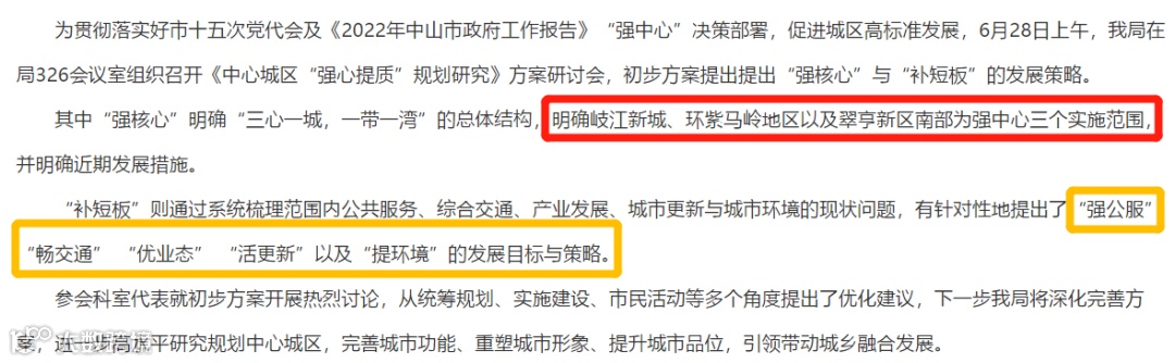 市自然资源局召开了《中心城区“强心提质”规划研究》方案研讨会,提出“强核心”与“补短板”的发展策略。