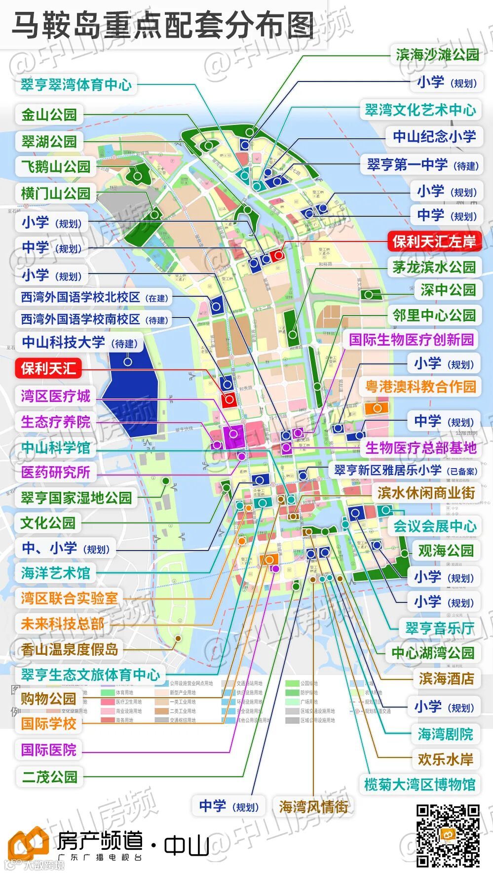 而且,马鞍岛上40所学校(含幼儿园)、6所顶级医疗机构、13个生态公园、9大文体地标,及5大业态的商业娱乐组团,在中山难有区域与之媲美!