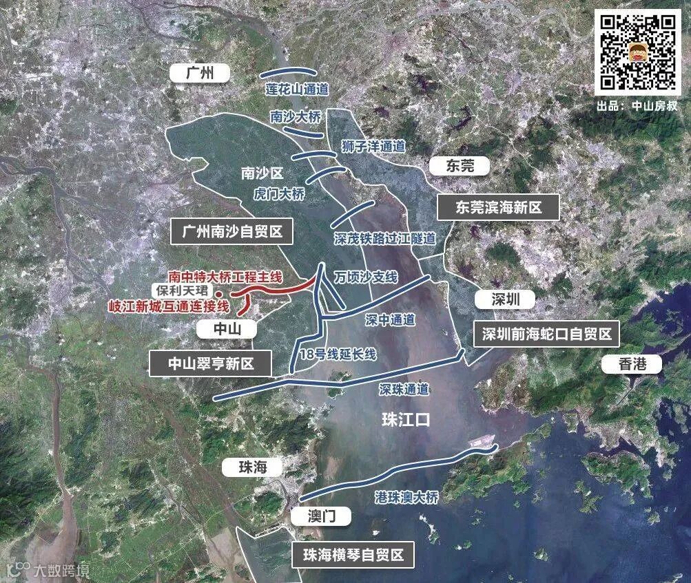 无论是南北-广中珠走向,还是东西-深中江走向,都有着不可复制的区位优势。而岐江新城与马鞍岛,分别扼守着至关重要的枢纽瓶口位置。