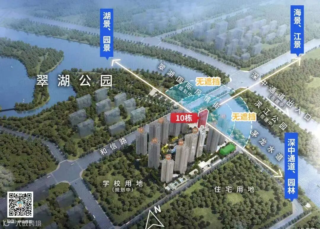 尤其是新加推的10栋楼王,两梯两户设计,几乎位于整个项目的最东端,翠湖公园、茅龙水道、滨江公园尽在视野范围内。此外,还能将伶仃洋海景和深中通道一览无余,完全诠释了什么叫“王者中的王者”。