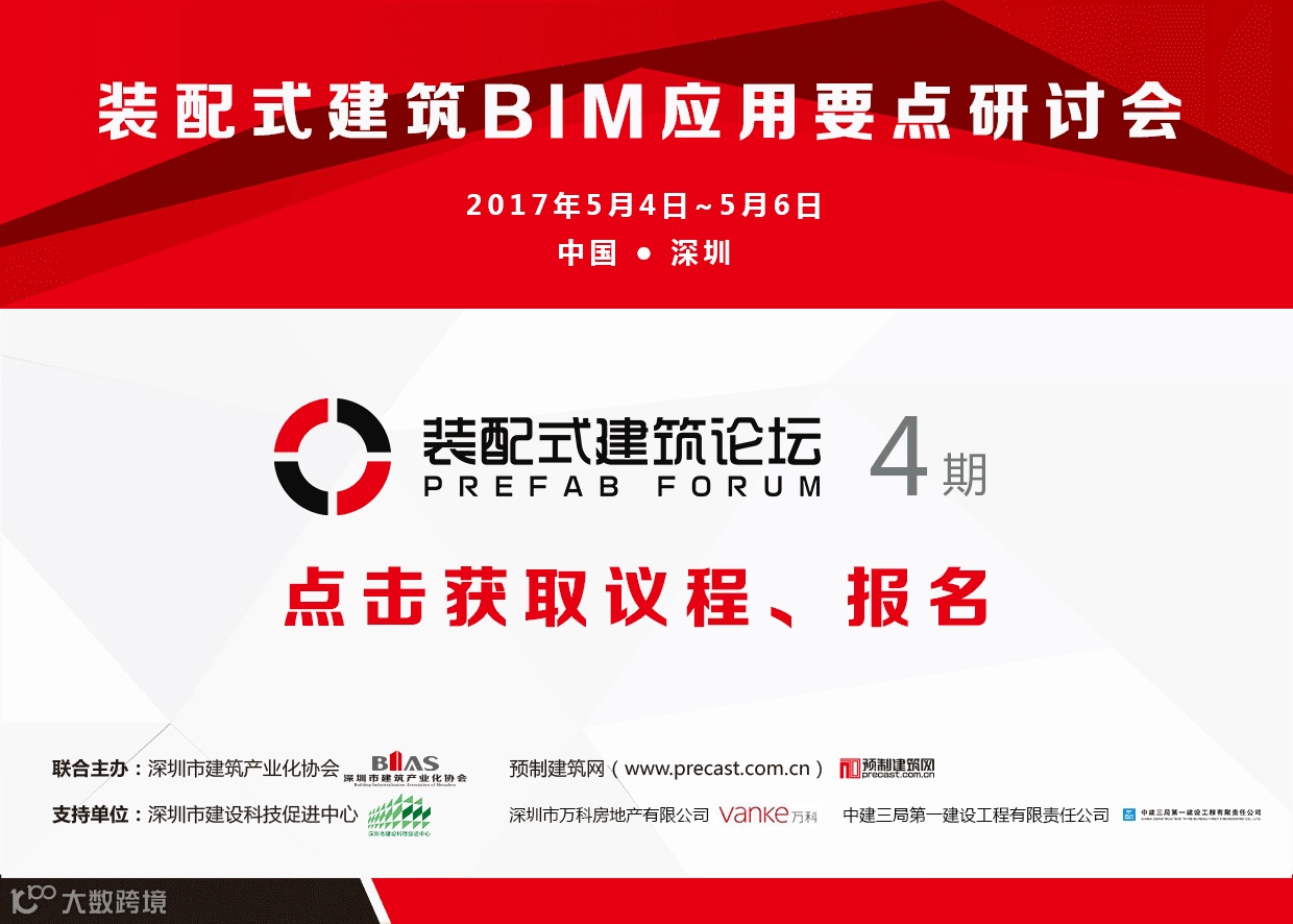 行业盛会:5月4——6日(深圳),预制建筑网携手行业多家知名企业单位,举办【装配式建筑BIM应用要点研讨会】,首次试图从装配式建筑全链条环节具体落地的角度,包括策划、设计、施工、构件生产、运维管理,甚至软件支撑,价值挖掘与盈利模式、全过程信息管理、包括VR-BIM虚拟现实等,从全国范围内发掘有过真实项目实操的专家,深度探讨。会后还有安排参观万科云城项目,欢迎大家参加~