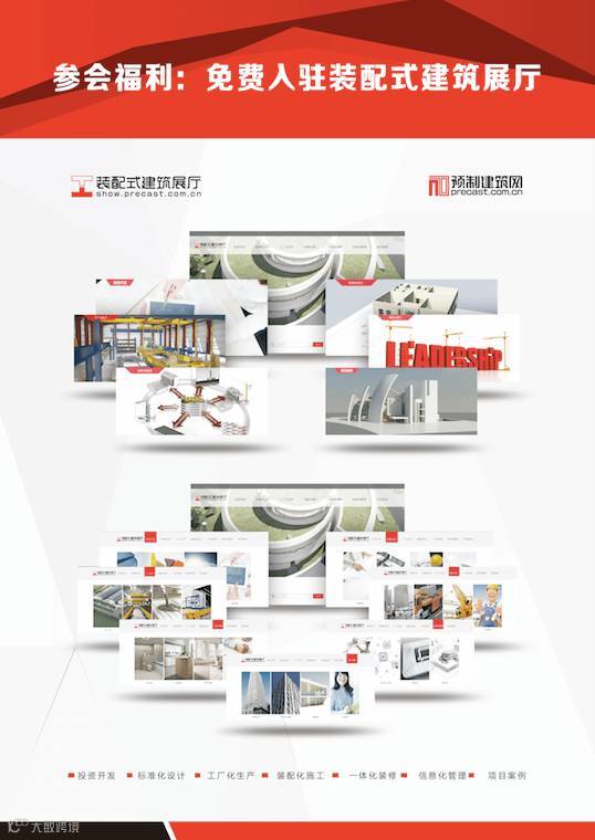 (2)每个参会单位都将免费获得预制建筑网(www.precast.com.cn)2016年刊一份以及一个入驻装配式建筑展厅(show.precast.com.cn)名额,向装配式建筑行业全方位展示企业、产品、项目等信息,详情请电话咨询会务组。
