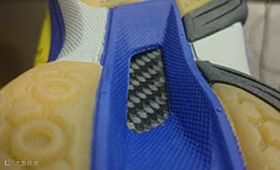 另外一定要介绍的是升级后的侧向稳定系统(LS-S)。为减少在穿着者进行侧向动作时,足部出现的不适感,设计师使用内软外硬的两个菱形射出片组成新的LS-S,同时也增加了菱形射出片的长度,提供更多横向支撑的面积,有效分散侧向移动时的冲击力,也间接提升了穿着者动作的稳定性。