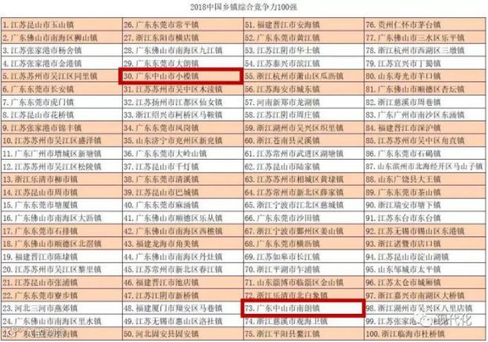 在公布的中国百强乡镇名单中