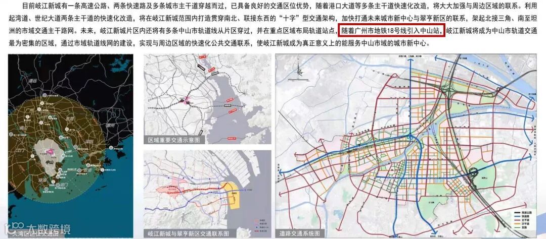今年8月19日,《中山市岐江新城提升规划》正式公布,也有对广州地铁18号线的站点重点提及。规划对轨道交通线路进行了预留,将在片区内建设四条轨道线路,广州市18号线引入中山站。每隔1公里左右设置一个站点,并衔接两个高铁站,轨道线路纵横分布。