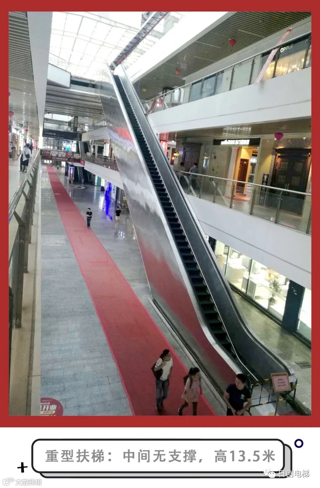 广东日创电梯有限公司有幸参与东方国际商业广场转型升级,提供全部新增电梯产品,涵盖载货电梯、观光电梯、无机房客梯及自动扶梯,所有产品均运行状况良好。其中提升高度13.5米的重型扶梯由一楼直达四楼,气势宏伟。该重型扶梯采用双主机驱动,双桁架无中间支撑设计,经各级权威部门鉴定,均一致验收合格。自投入运行以来,吸引众多人士前来感受体验,当下已成为东方国际商业广场内一道靓丽的风景。