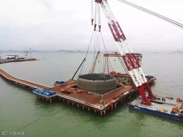 钢吊箱是主塔桩基的“海中螺母”,更是实现百年品质工程的重要基石。此次吊装的钢吊箱总高度达17.6米、厚度2.5米、外径41.1米,是一个近6层楼高、2个篮球场大小、重达1800吨的“钢铁巨人”。