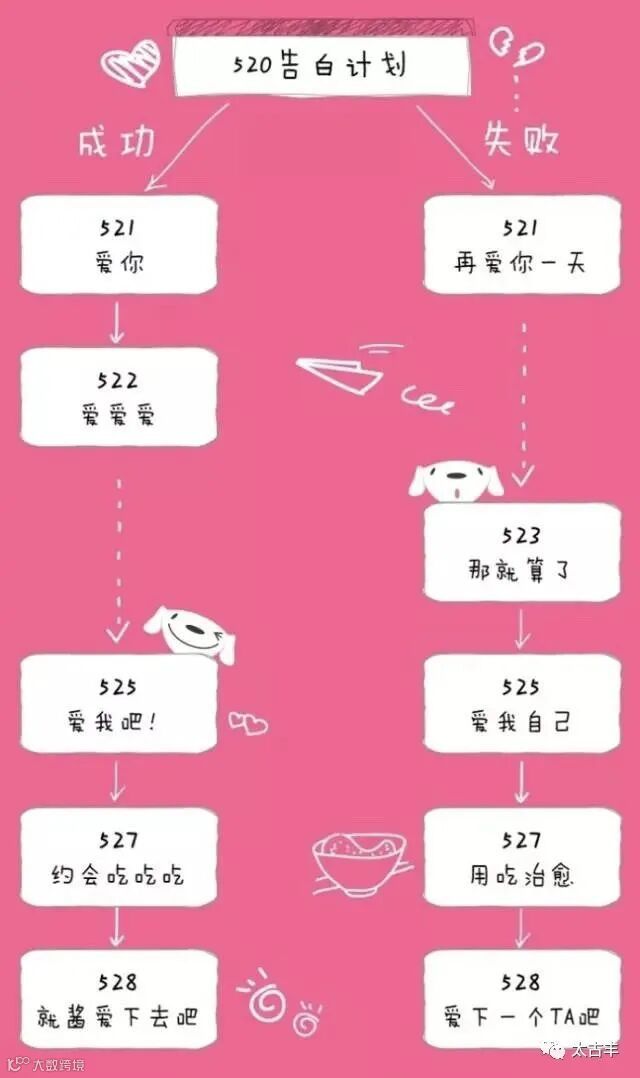 在今天这个日子,勇敢地去告白吧,反正就算失败了,也可以吃吃吃来治愈,然后再换一个人继续。