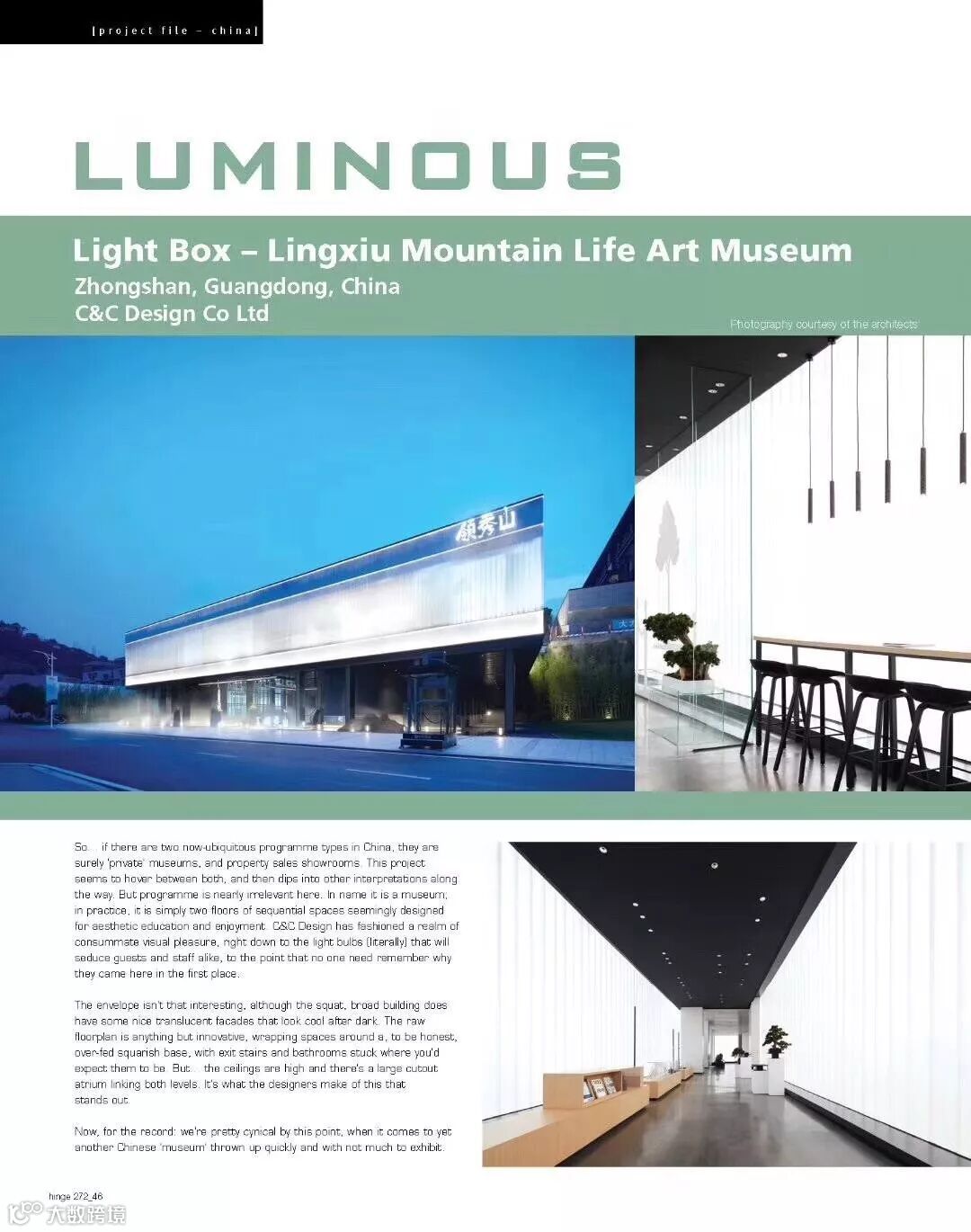 近日,香港《HINGE》设计杂志报道了保利远洋领秀山生活艺术馆,文章中详细地介绍了项目入口、全生命周期人居体验馆等区域的独特设计风格,并且得到设计大师的赞赏。