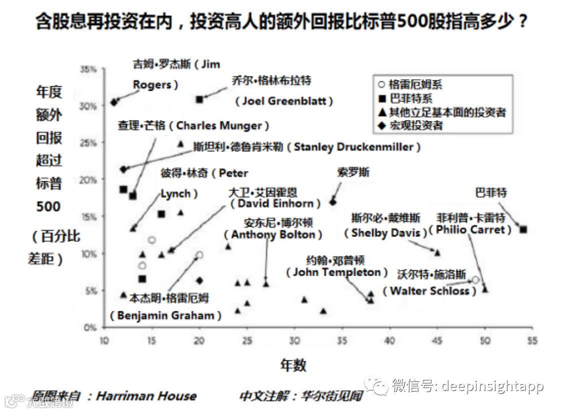我们看到基本上平均可追溯业绩在30年左右,最少的也有10年以上的可追溯业绩,最长的就是我们的巴菲特,超过了55年的可追溯业绩。这一点是最近思考中给我启发最大的。无论什么投资风格,方法,甚至性格,能够成为真正影响到后人的投资大师必须有一个特点;活得足够长。