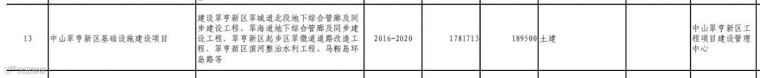 →中山翠亨新区基础设施建设项目,计划完成时间2016-2020年。