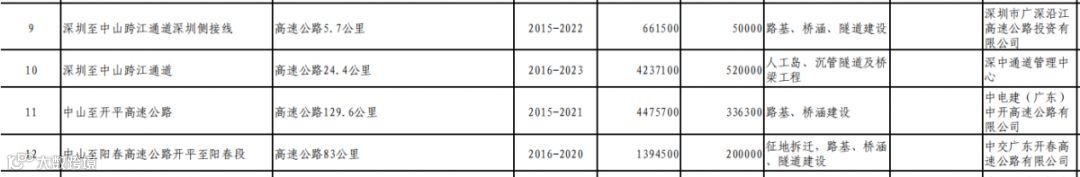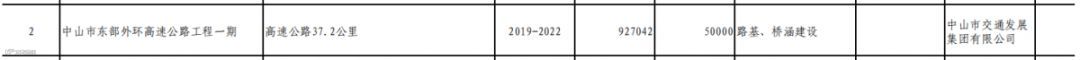 →中山市东部外环高速公路工程一期,高速公路37.2公里 2计划完成时间2019-2022年。