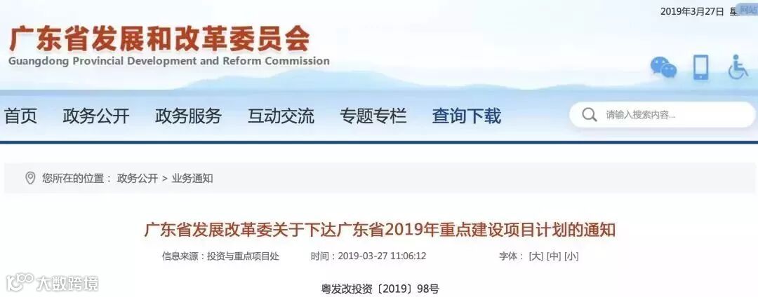 刚刚,广东省发展改革委公布了广东省2019年重点建设项目计划的通知。