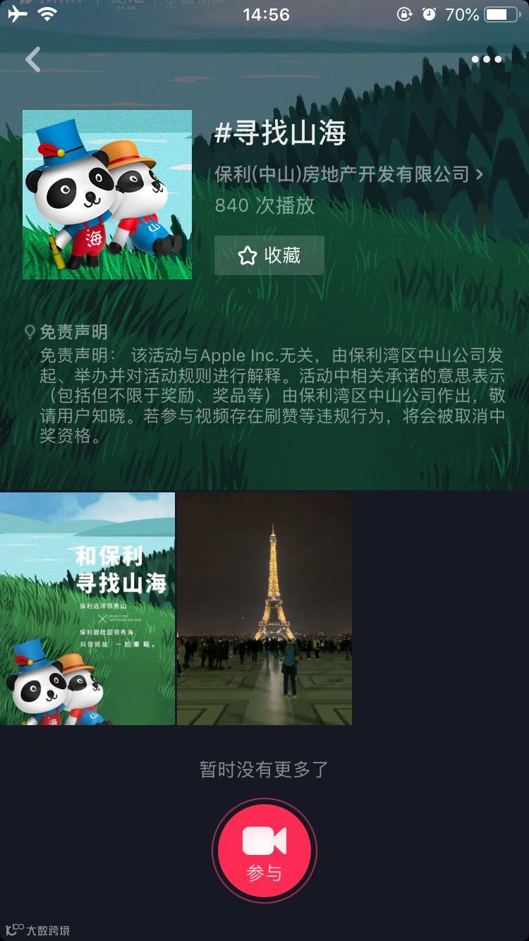 现场拍摄山海主题视频上传到抖音