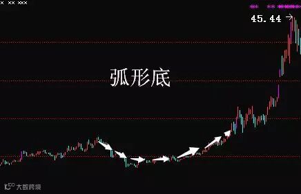 弧形底主要分为两种,一种是K线弧形底,另一种是成交量弧形底,两种情况一起出现的成功率会更加高。同样,弧形底以大阳线突破了颈线,成交量方法,反转就成立了。