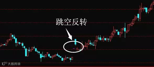 股价在经过持续的下跌,成交量极度萎缩的后强反转爆出了向上跳空的缺口,短期不会在补缺口了,构成底部。见下图: