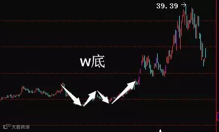 K线形态呈现W形态,这是下跌趋势结束前出现的反弹,然后会再度下跌,在前次低点附近再次出现反转,如果成交量有效的放大,并且以大阳线突破颈线,那么趋势将展开: