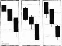 在高档区出现这种连续三个黑小卒下跌的组合时,表示上升市势已经完结,下跌市势已经开始。