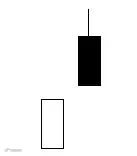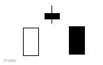 在价格出现阳线上涨之后,又出现阴线,且该阴线令价格落到前阳线实体1/2以下。这一组合常在市势已经大涨一段,甚至创下天价的时候出现,表示市势逆转,随后将为下跌行情。