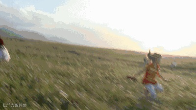 这时候最easy,只要手提着线,再向前跑~迎着冷眼和咆哮,那么你就能轻易地把风筝送上天!