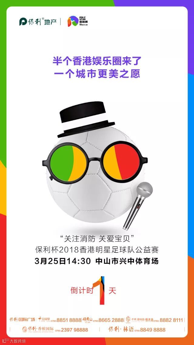 保利地产作为责任央企,大力支持此次活动,冠名赞助为保利杯“关注消防·关爱宝贝”香港明星足球队中山公益赛,旨在通过香港明星足球队多年来从事慈善公益事业的传播效应和明星们的积极正面的公众形象,使社会增加消防意识,关注儿童安全问题。
